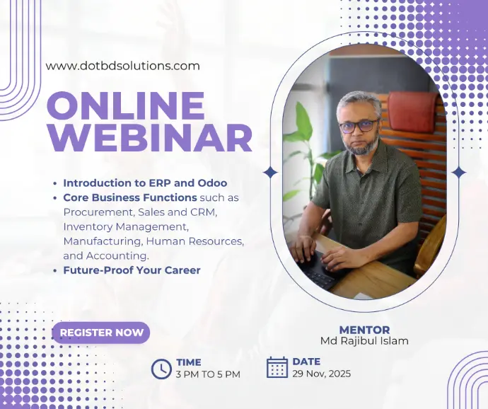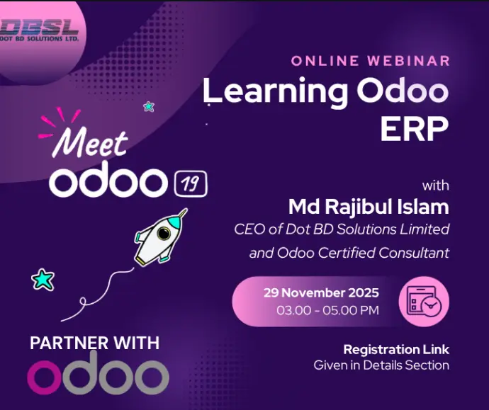 Join Md Rajibul Islam, CEO of Dot BD Solutions Limited and Odoo Certified Consultant, for a free webinar to master the core functions of the powerful Odoo ERP system.